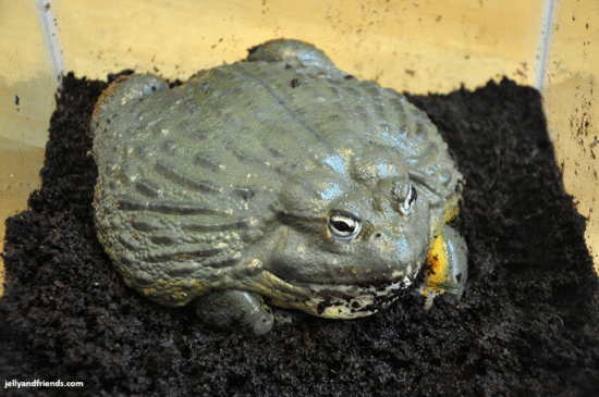 Because of their size and strength, African bullfrogs require sturdy, spacious enclosures. A single adult should be housed alone in at least a 40-gallon enclosure, with more space always being better. Substrate should retain moisture without being muddy—coco fiber or soil mixes are commonly used.